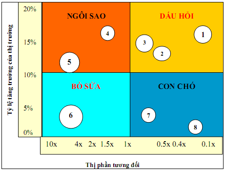 Các SBU khoanh tròn số 4 và 5 ở ô Ngôi sao được khuyến khích đầu tư, trong khi số 7 và 8 ở ô Con chó thì nên thoái vốn.